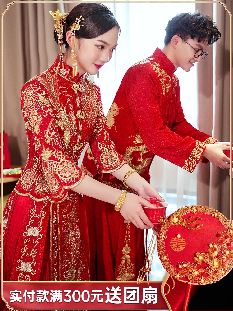 秀禾服情侣套装结婚o新娘年新款中式礼服婚纱褂敬酒服热门设计联盟服务商