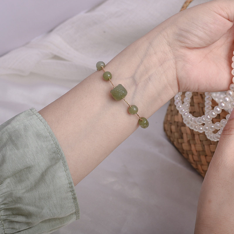 手作醒狮和田玉老型珠6mm转运珠手链女小众设计轻奢感女生热门设计联盟服务商