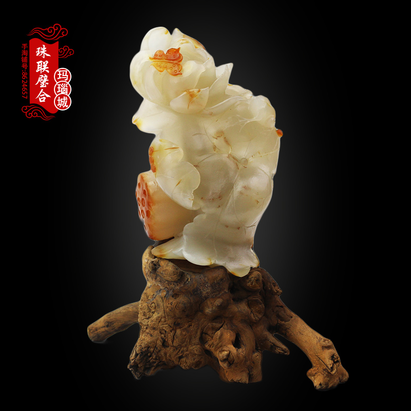 天然玛瑙俏色莲藕荷花办公居家摆件饰品工艺品锦上添花花开富贵热门设计联盟服务商